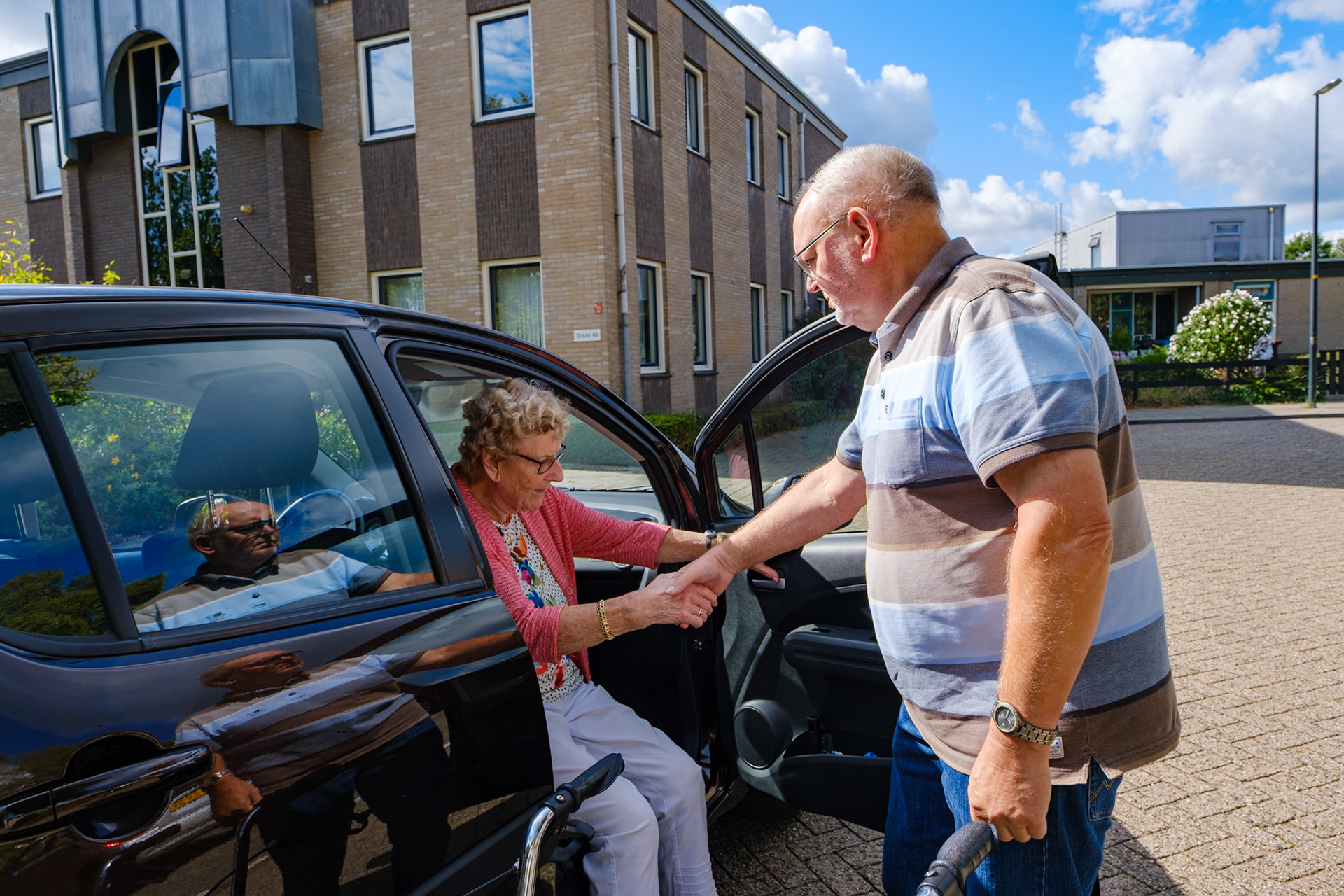 De vrijwilliger is niet alleen verantwoordelijk voor het rijden, maar is ook behulpzaam bij het in-en uitstappen en het begeleiden naar en van de bestemming.